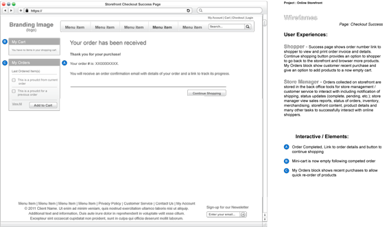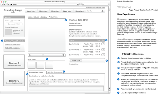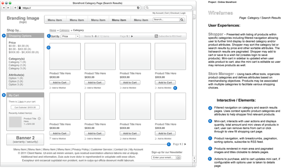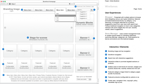 The following is a summary of the annotations that accompany the wireframe templates. These notes can be used to establish/inform your client of the user experience(s) that can be expected from an online store build with magento commerce.
